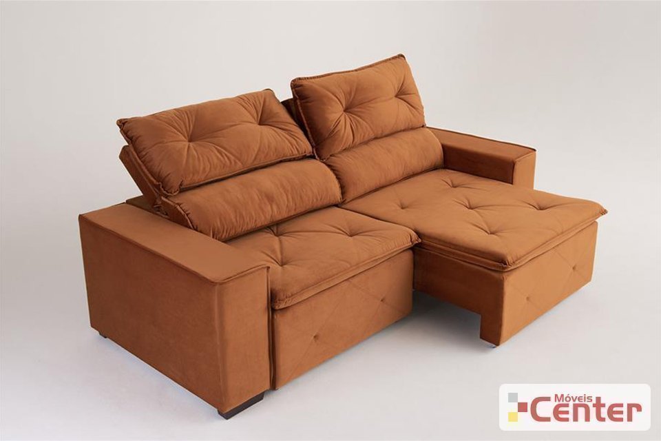 Encosto: Reclinável com almofada fixa, preenchimento de fibra siliconizada e flocos. Os mesmos podem ser removidos parcialmente do estofado.
